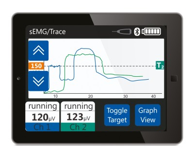 - sEMG – měření svalového napětí s možností následné stimulace při dosažení nastavených hodnot
